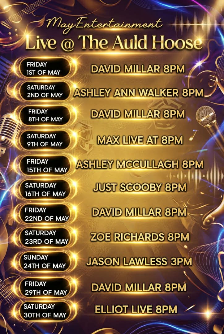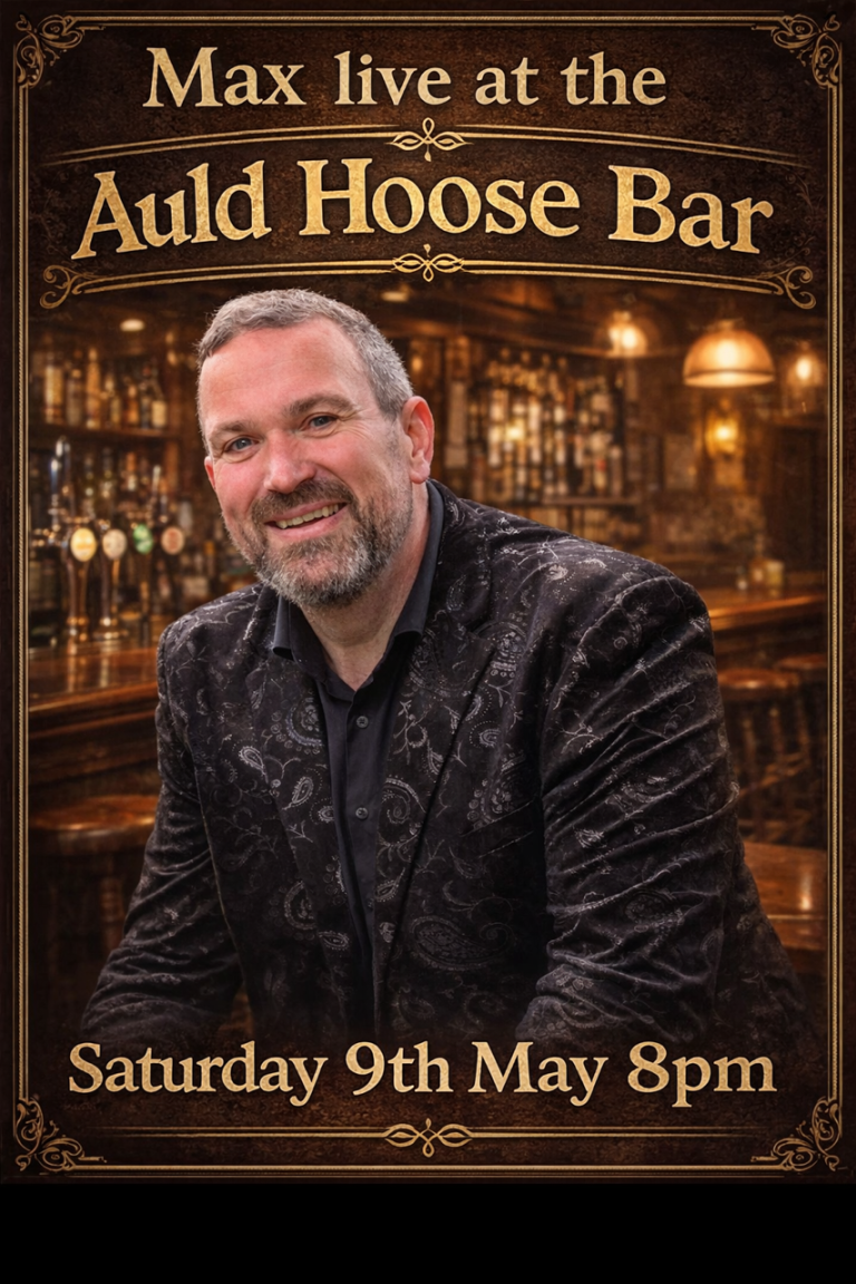 Join us for an amazing night of live music with the outstanding Max live in the the Auld Hoose Bar