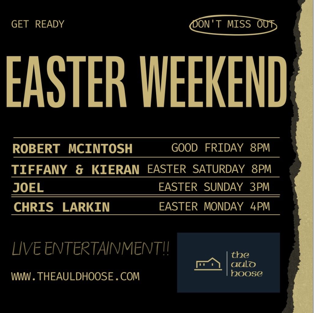 Join us from 8pm easter saturday as the fantastic Tiffany & Kieran return to the Auld hoose Bar