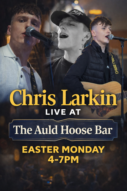 Join us Easter Monday as the talented Chris Larkin makes his debut in the Auld Hoose Bar